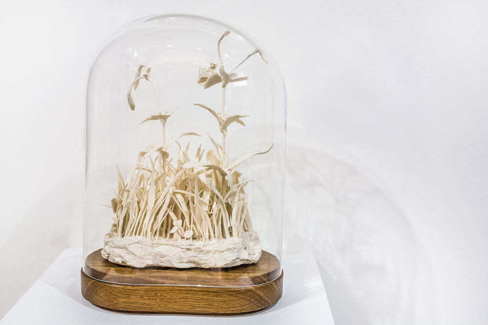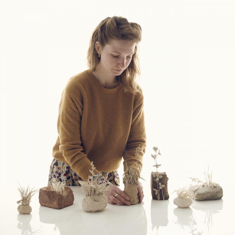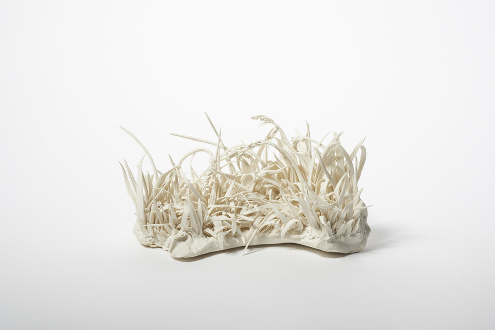 “Yaratıcı koltuğuna oturan kişi ya keskin ve düz çizgilerin ya da bir pelte gibi esnek materyallerin ve kıvrımları hatların insanıdır,” diyor Spragg. “Ben ikincisi olduğundan eminim ve çamurla çalışmayı seçmemin sebeplerinden biri de bu.” Katie Spragg çamur enstalasyon ve animasyonlarını insanlara dikkat çekici hikâyeler anlatmak için hayata geçiriyor. Üç boyutlu çimen öbeklerini konu ettiği son porselen çalışmasında çimlerin her birini teker teker elleriyle yapıp tabana oturtmuş. “Çalışmalarımı çamur üzerine yapılmış üç boyutlu çalışmalar olarak görüyorum,” diyen Spragg’ın bitki temasını ve bu tekniği kullanarak yarattığı çalışmalarının çoğu, partneri Geoffrey Hagger’ın yaptığı gözlem kutuları aracılığıyla izleyiciyle buluşuyor.